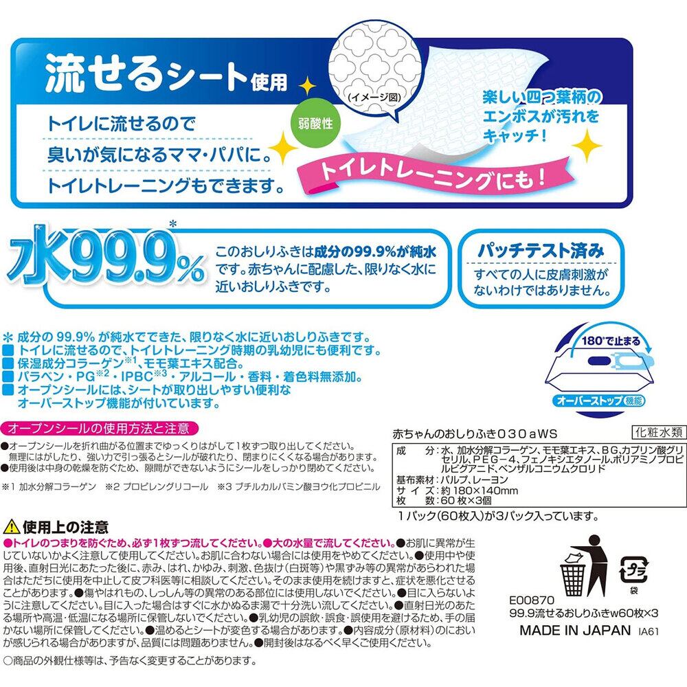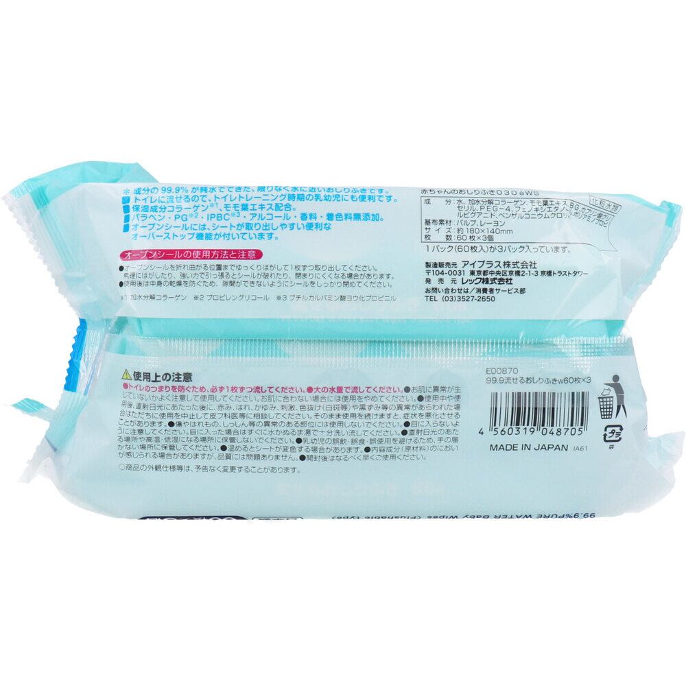 【2セット】 水99.9% 流せるおしりふき 60枚×3個パック 【pto】