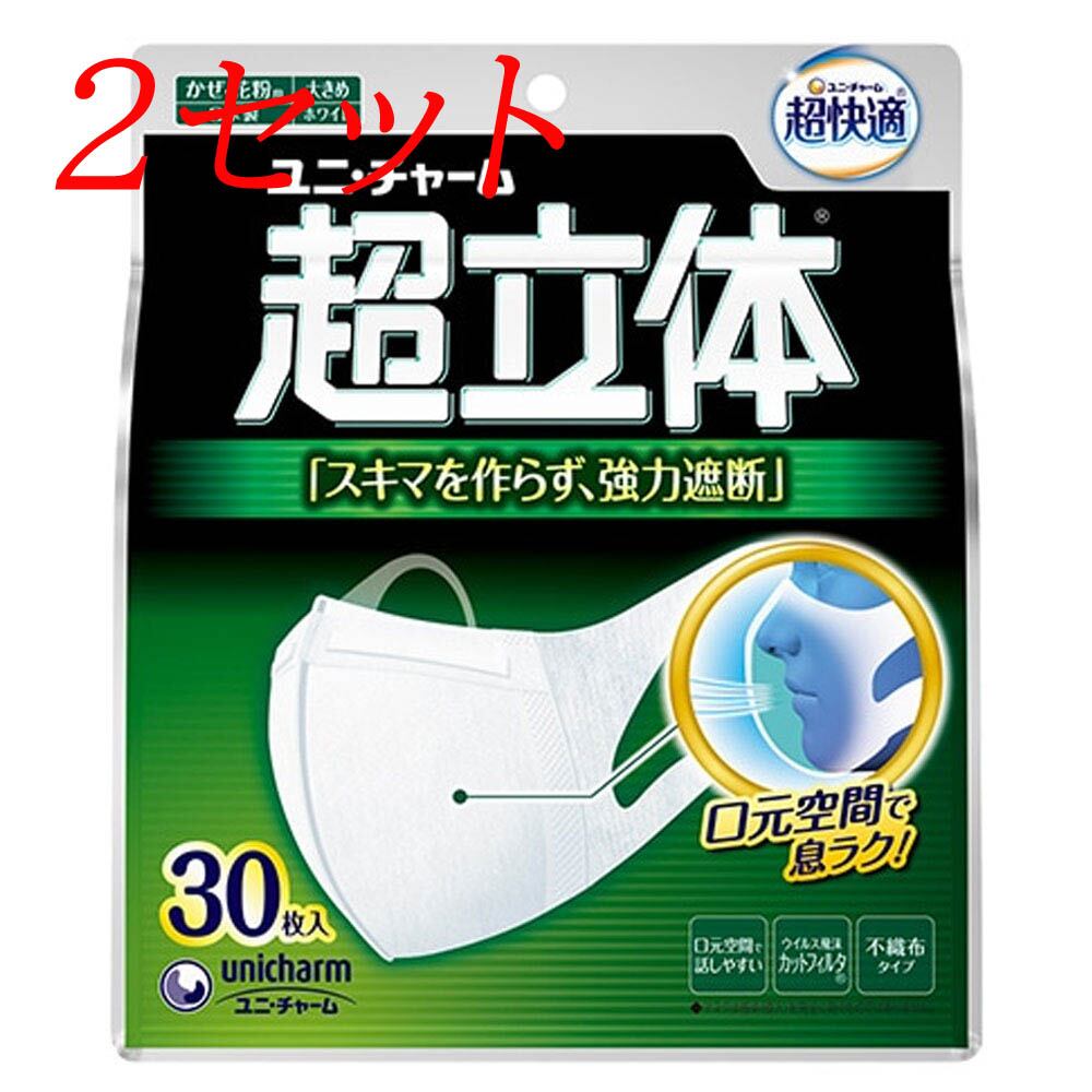 【2セット】 超立体マスク かぜ・花粉用 大きめサイズ ホワイト 30枚入 【pto】
