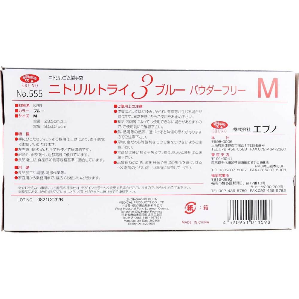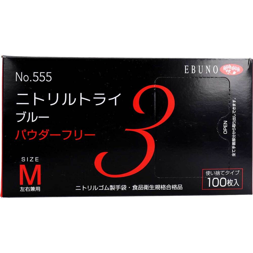 【2セット】 【業務用】No.555 ニトリルトライ3 ブルー パウダーフリー ニトリルゴム製 使い捨て手袋 Mサイズ 100枚入 【pto】