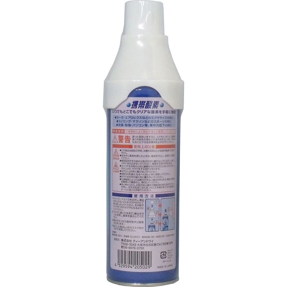 酸素純度・・・95%充填量・・・5L(25度)使用回数・・・50〜60回(2秒/回使用の場合)