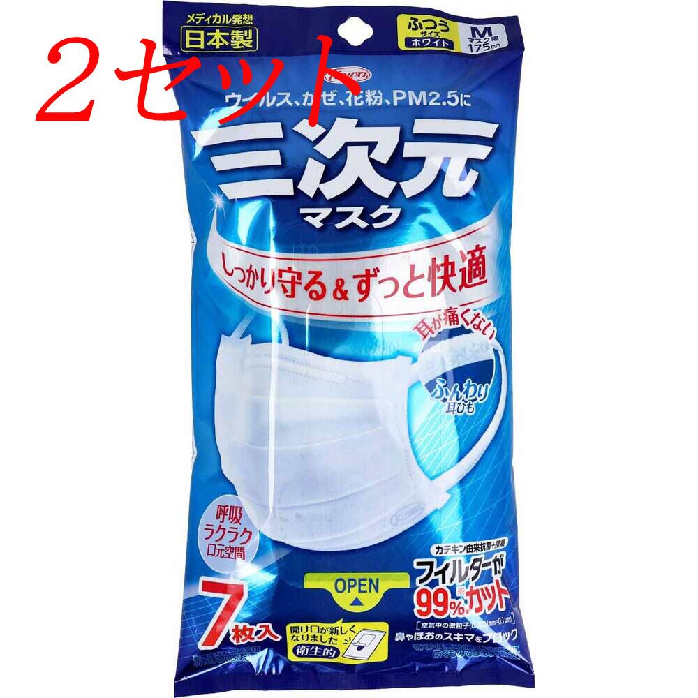 【2セット】 三次元マスク ふつうMサイズ ホワイト 7枚入 【pto】