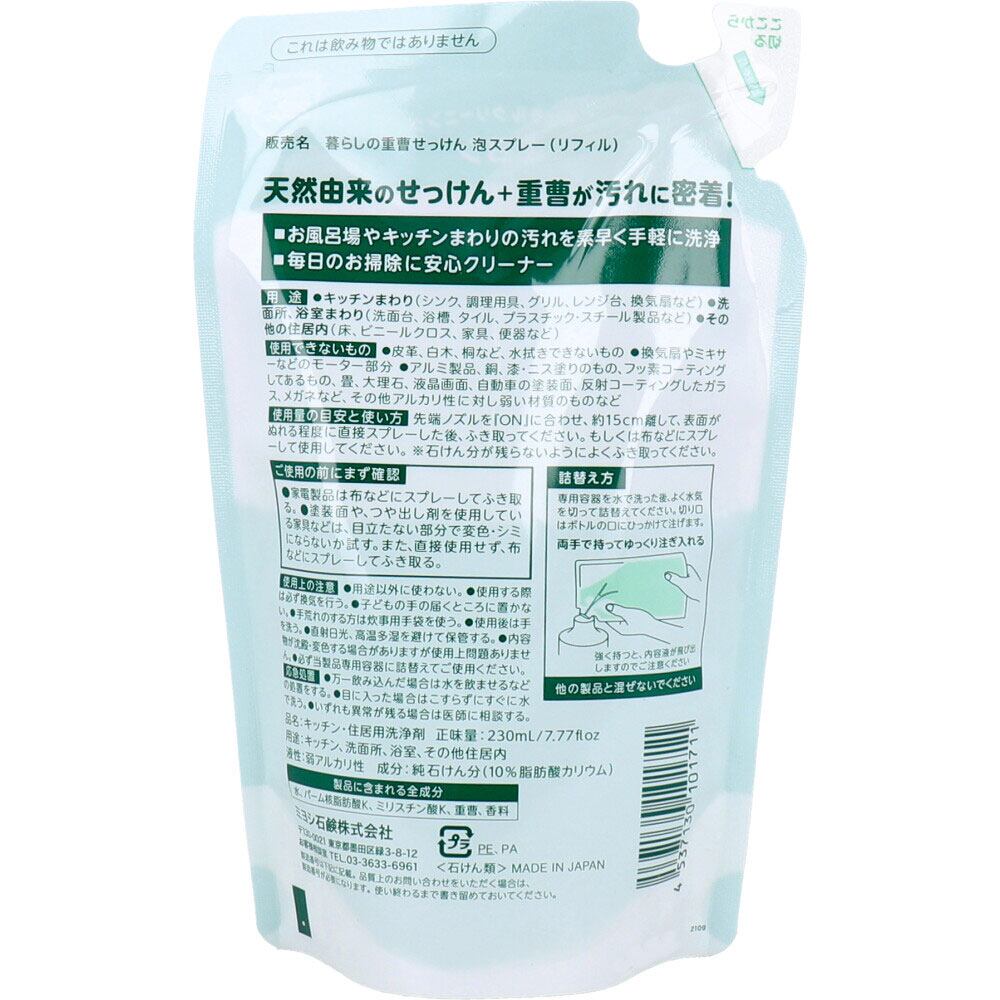 【2セット】 暮らしの重曹せっけん 泡スプレー リフィル 【pto】