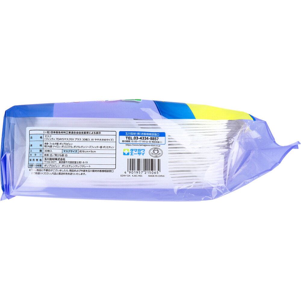 【2セット】 フィッティ 7DAYSマスクEX プラス ホワイト やや大きめサイズ 個別包装 30枚入 【pto】
