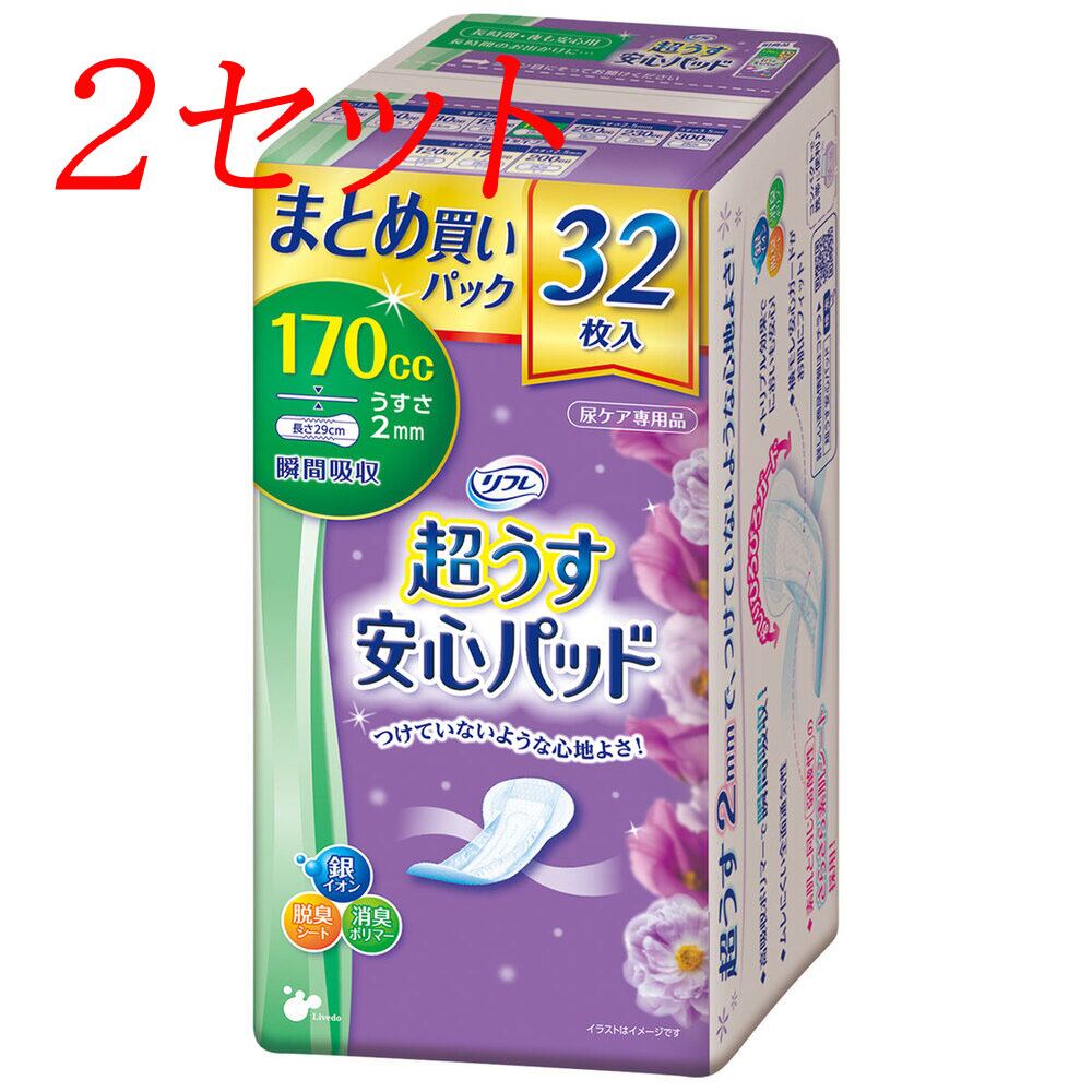 【2セット】 リフレ 超うす安心パッド 長時間・夜も安心用 まとめ買いパック 32枚入 【pto】