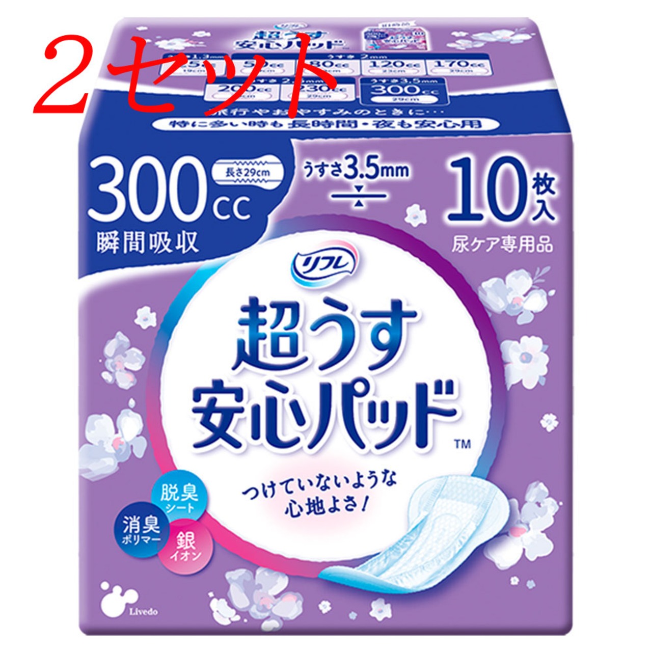 【2セット】 リフレ 超うす安心パッド 特に多い時も長時間・夜も安心用 10枚入 【pto】
