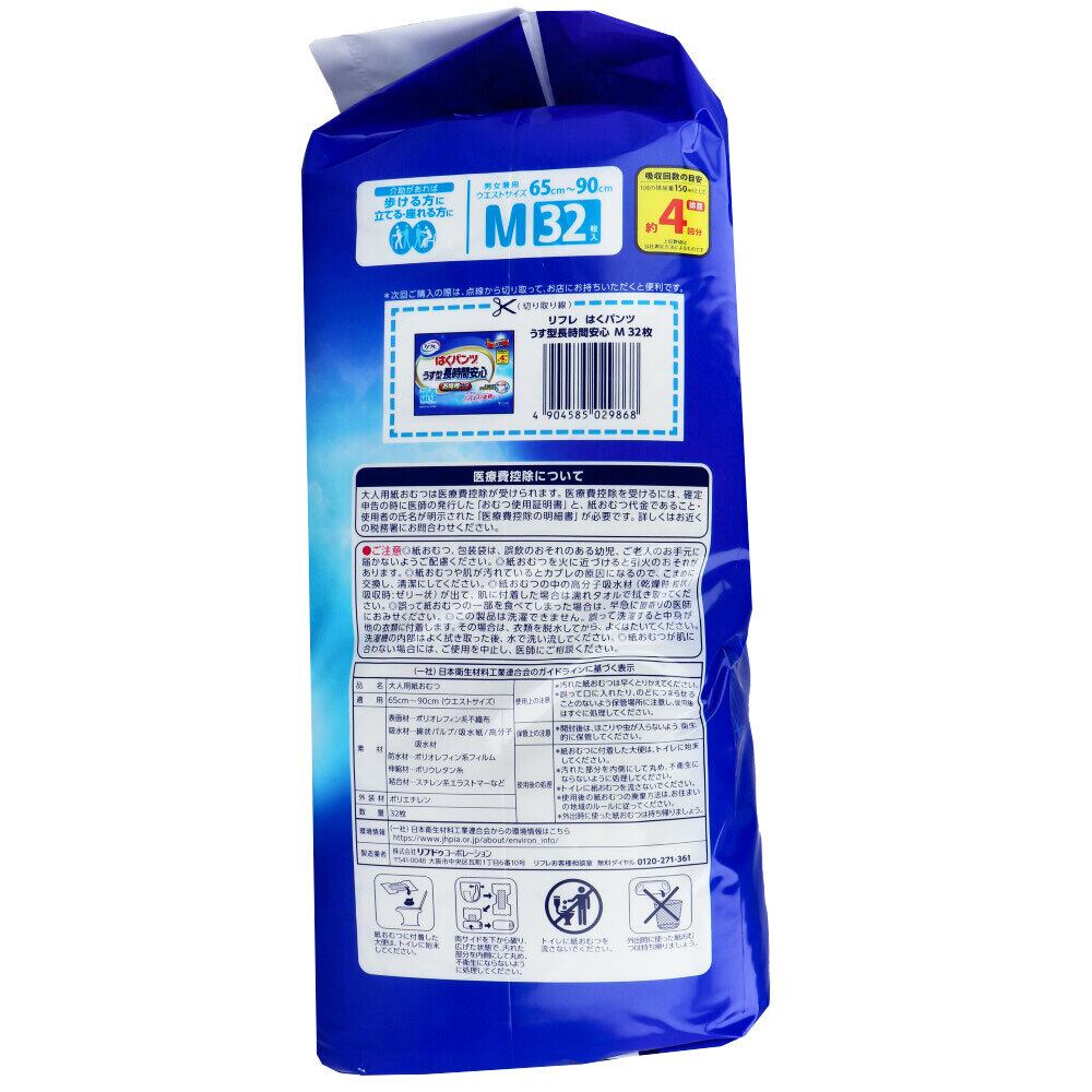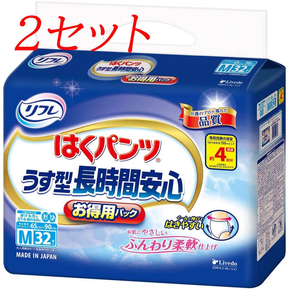 【2セット】 リフレ うす型長時間安心 はくパンツ お得用パック Mサイズ 32枚入 【pto】