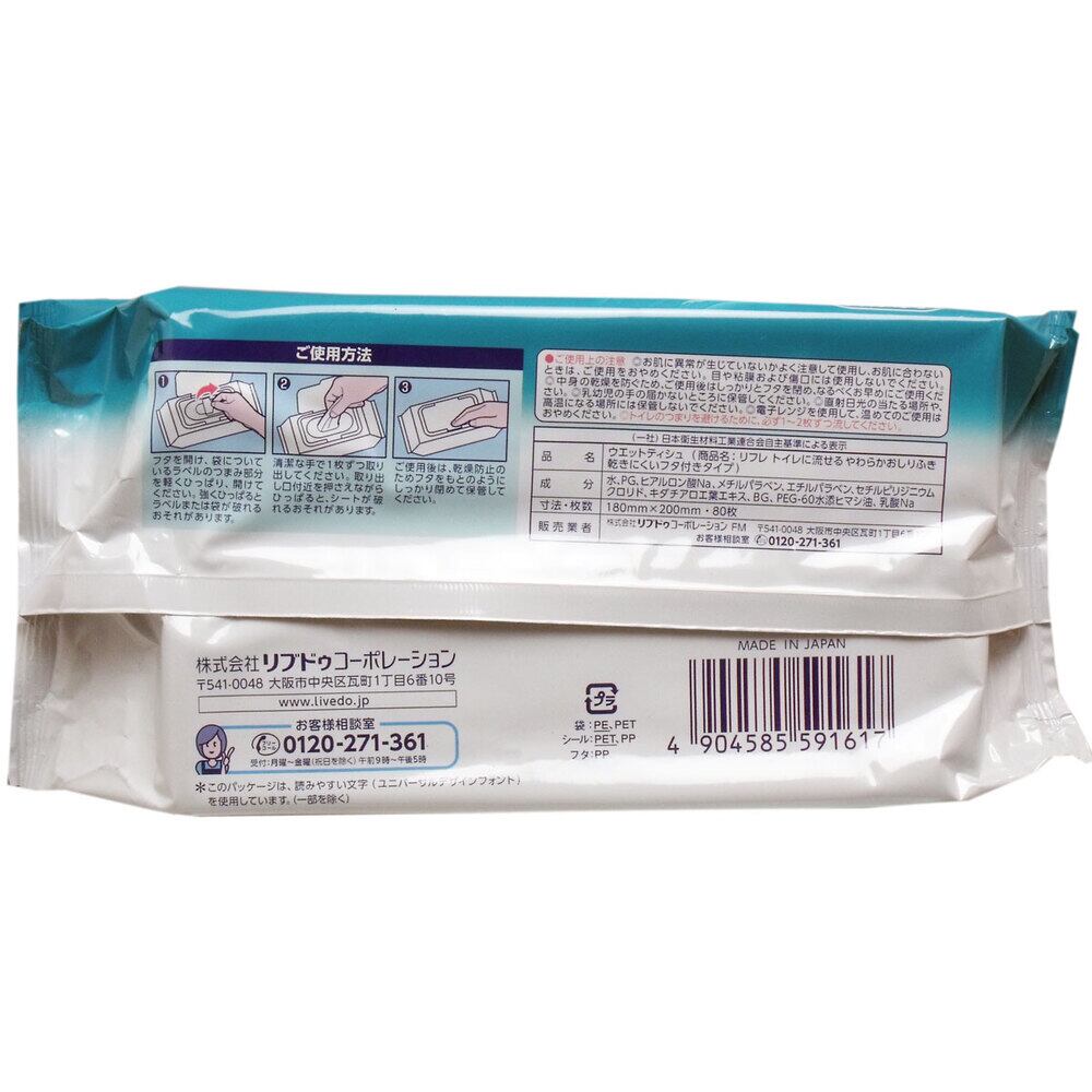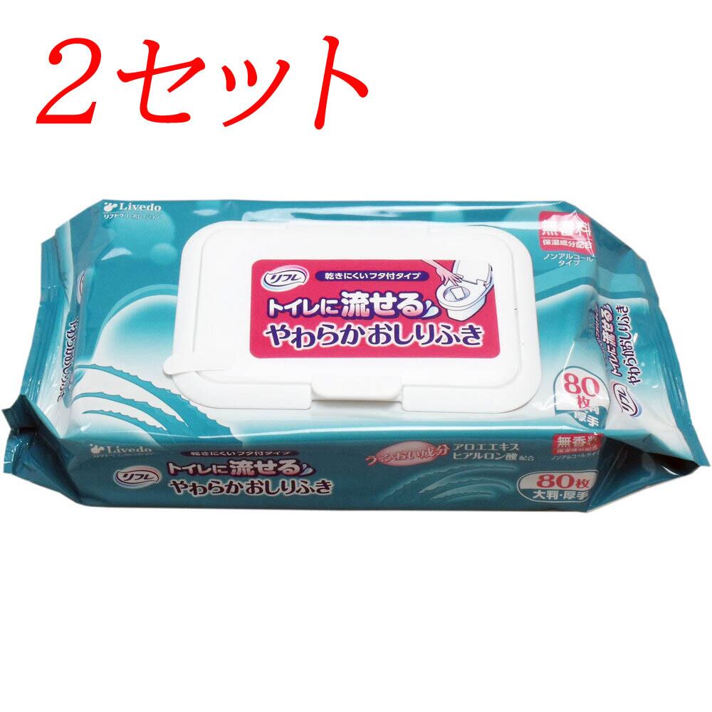 【2セット】 リフレ トイレに流せるやわらかおしりふき 大判・厚手 80枚入 【pto】
