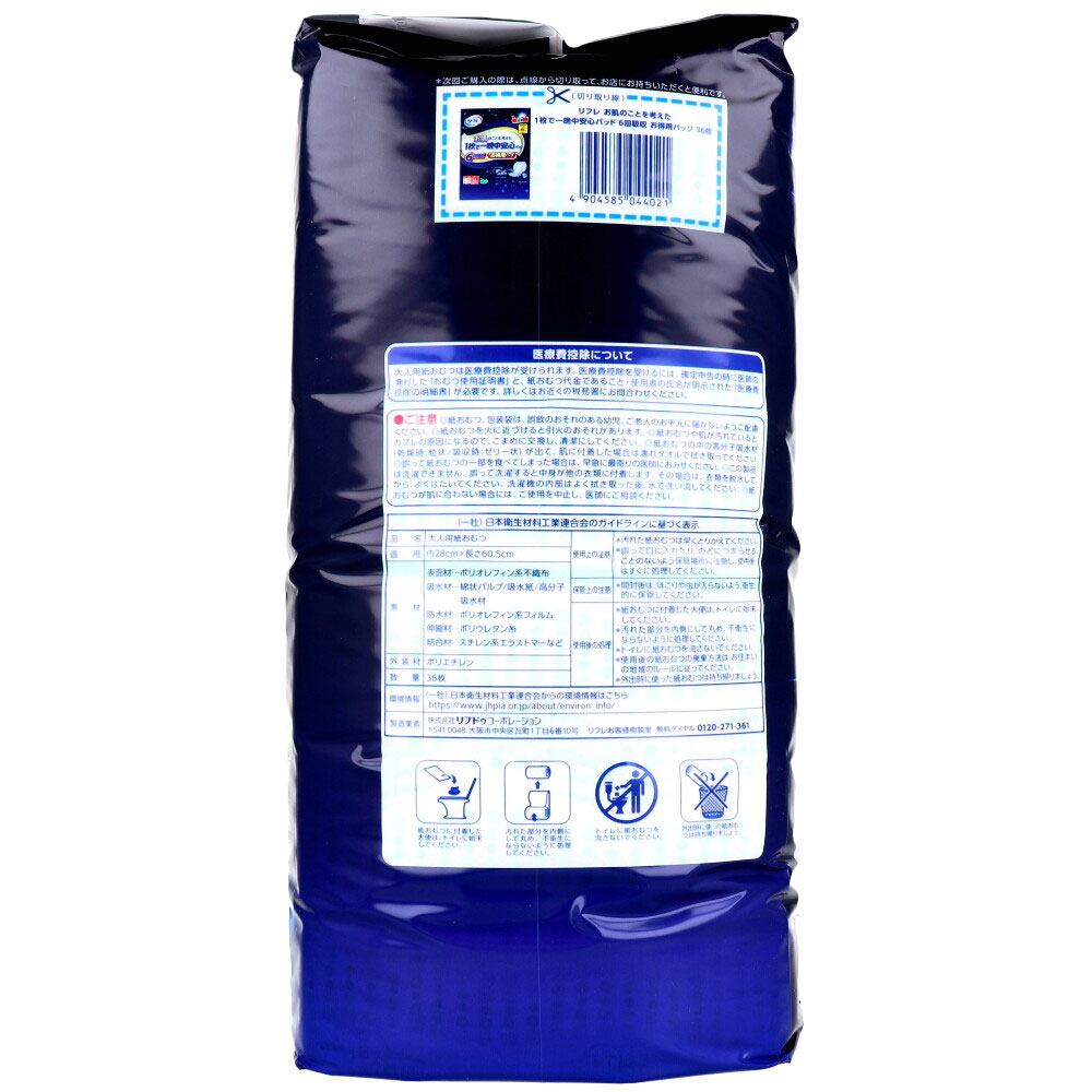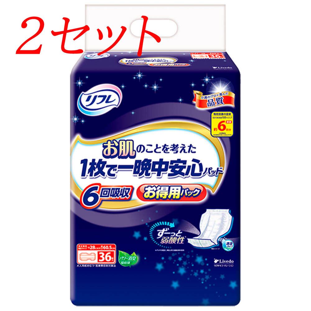 【2セット】 リフレ お肌のことを考えた1枚で一晩中安心パッド 6回吸収 男女兼用 36枚入 【pto】