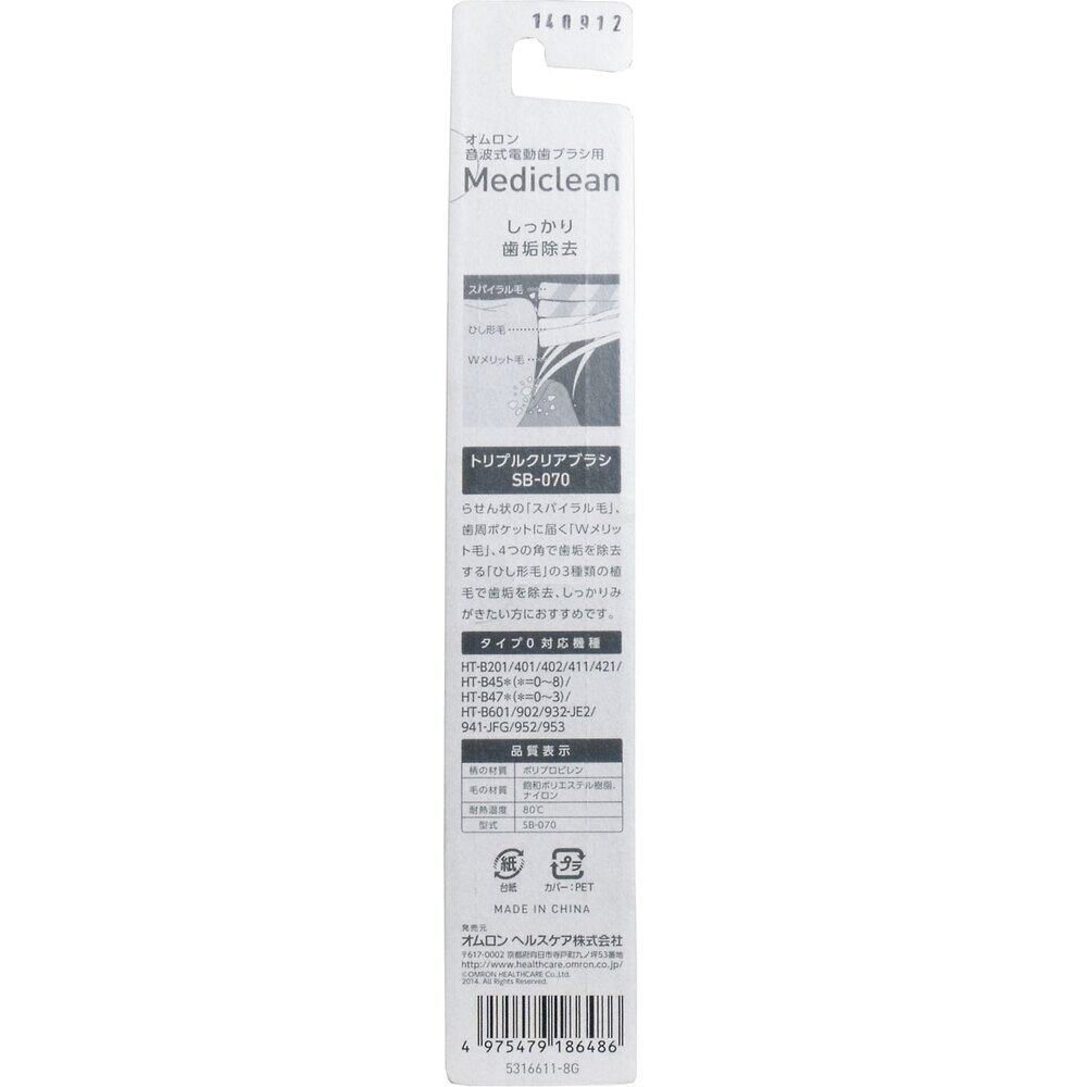 【2セット】 オムロン 音波式電動歯ブラシ用 トリプルクリアブラシ 2個入 SB-070 【pto】