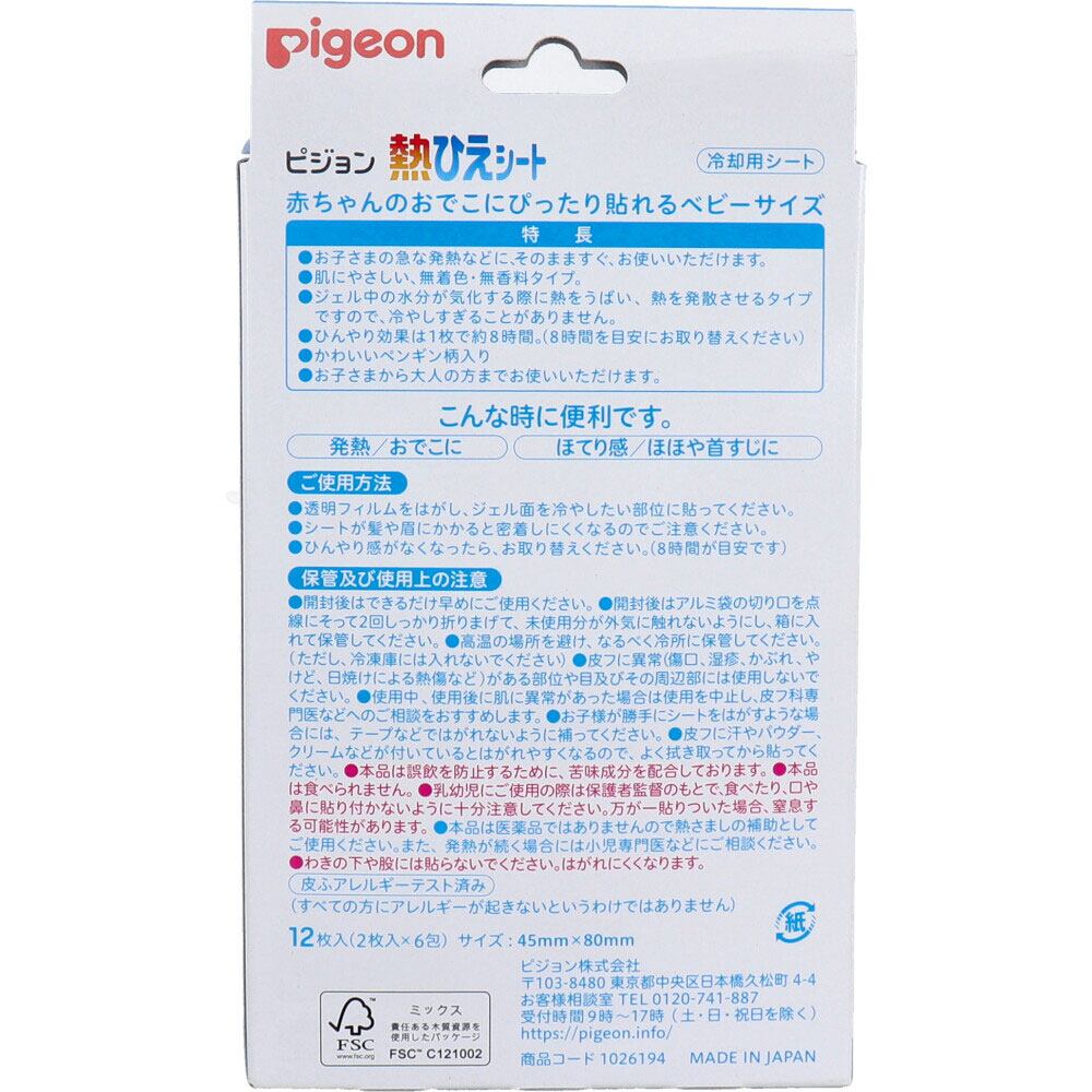 【2セット】 ピジョン 熱ひえシート (ベビー用冷却シート) 12枚入 【pto】