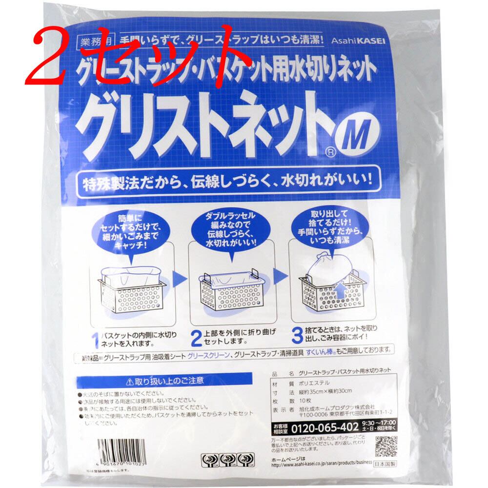 【2セット】 グリーストラップ・バスケット用水切り袋 グリスネットM 35cm×30cm 10枚 【pto】