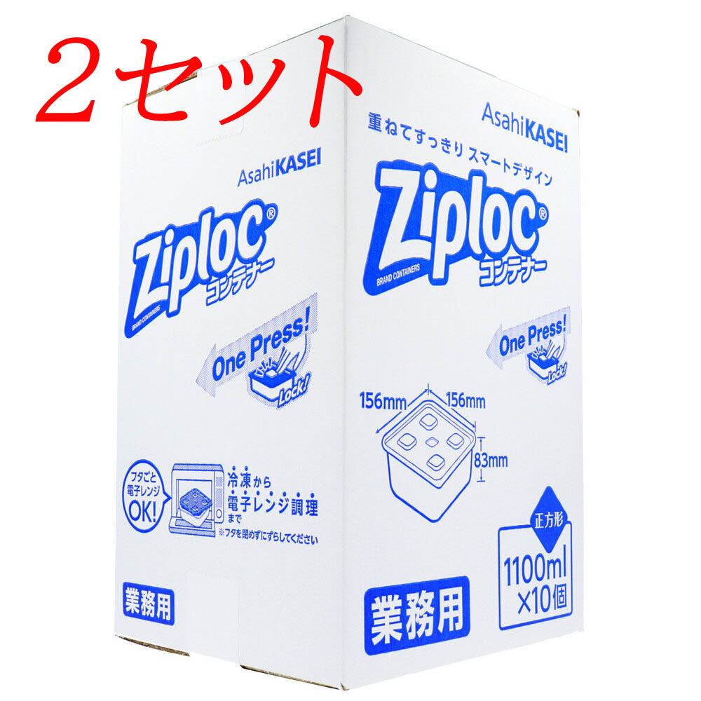 【2セット】 業務用 ジップロック コンテナー 正方形 1100mL×10個入 【pto】