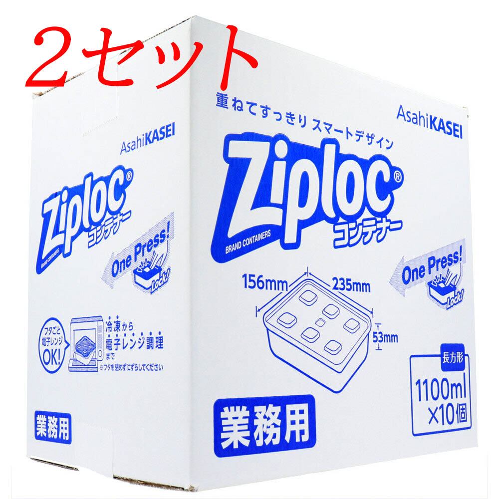 【2セット】 業務用 ジップロック コンテナー 長方形 1100mL×10個入 【pto】
