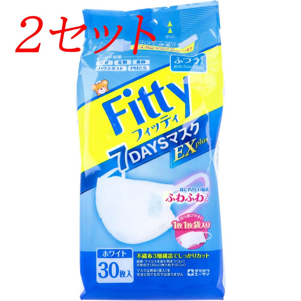 【2セット】 フィッティ 7DAYSマスクEX プラス ホワイト ふつうサイズ 個別包装 30枚入 【pto】