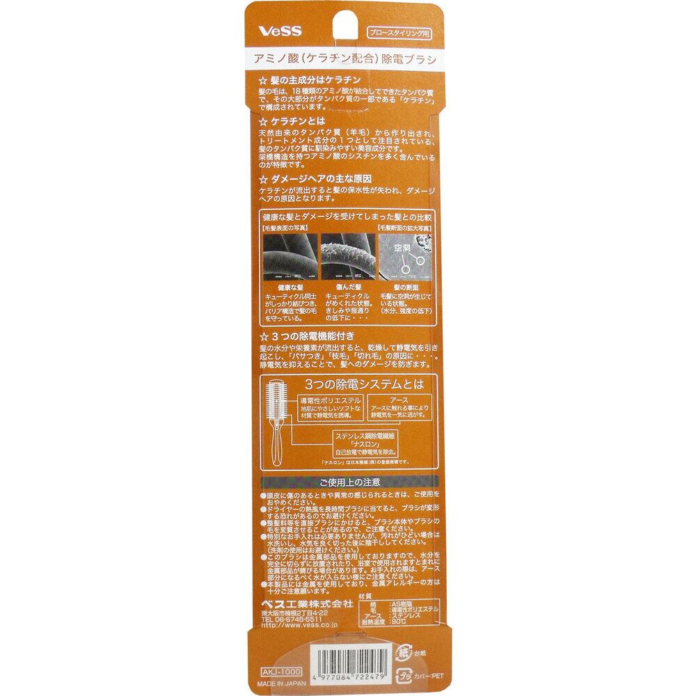 【2セット】 アミノ酸(ケラチン配合) 除電ブラシ ブロースタイリング用 AKJ-1000 【pto】