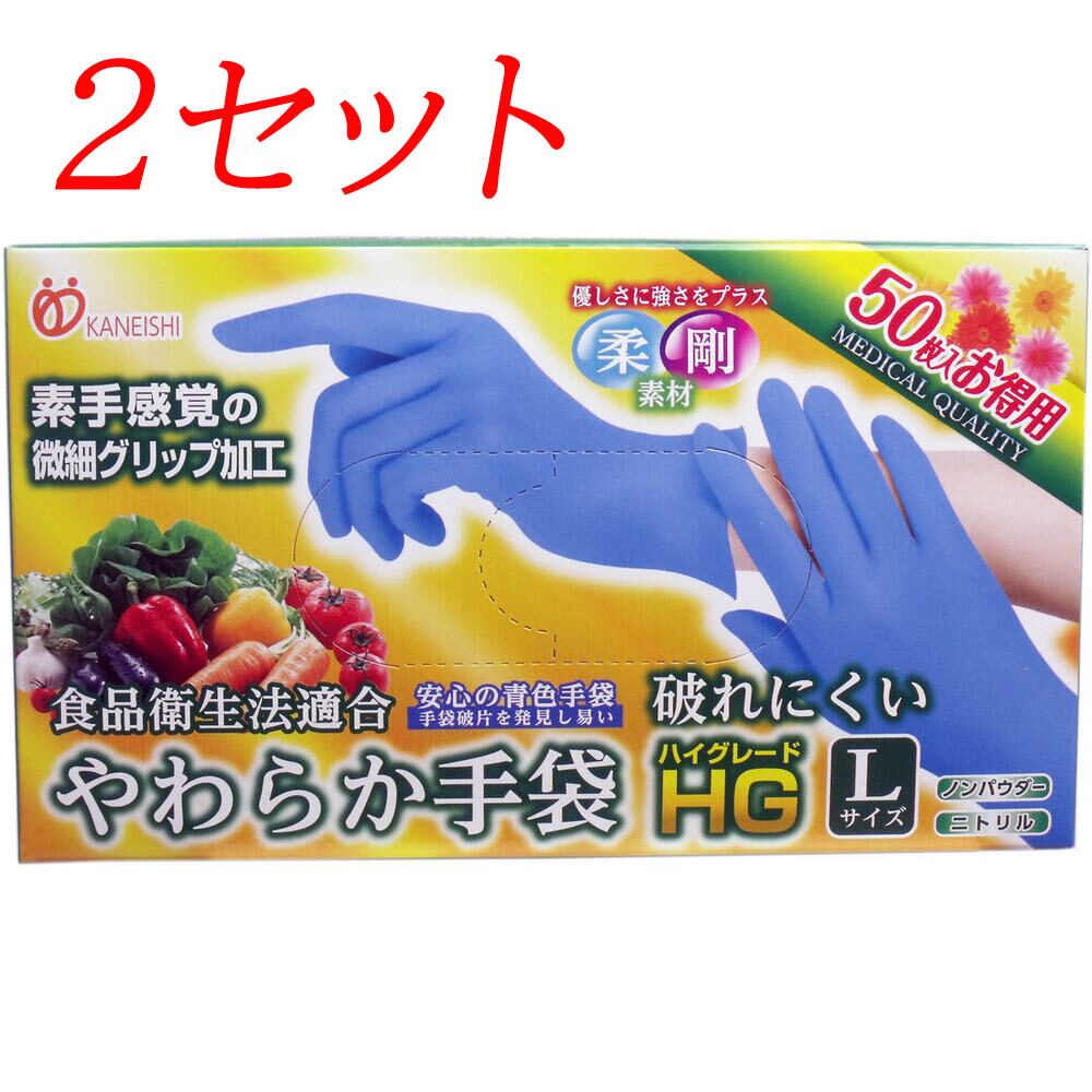 【2セット】 やわらか手袋 HG(ハイグレード) スーパーブルー Lサイズ 50枚入 【pto】