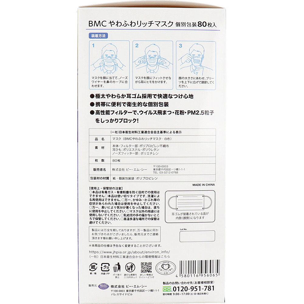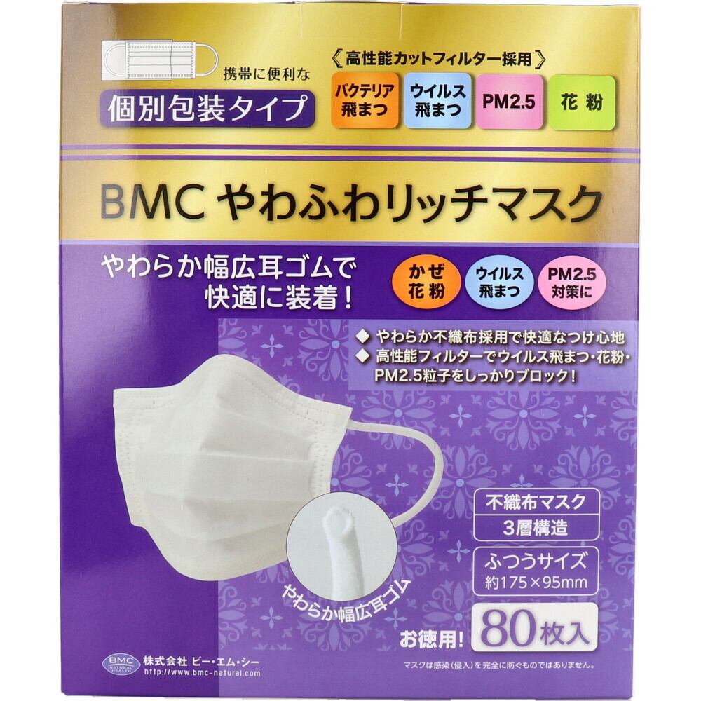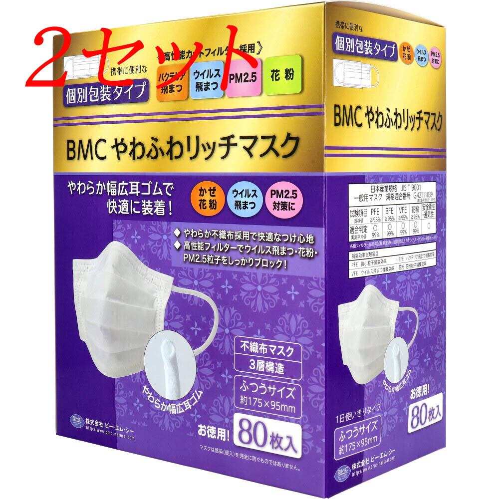 【2セット】 BMC やわふわリッチマスク 1日使いきりタイプ 個別包装タイプ ふつうサイズ 80枚入 【pto】