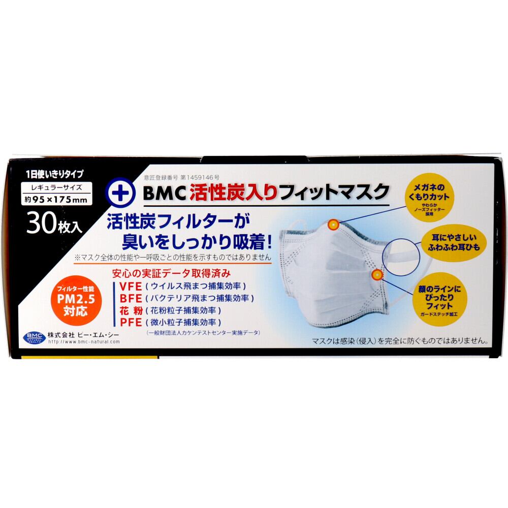 【2セット】 BMC 活性炭入り フィットマスク 使い捨て不織布マスク レギュラーサイズ 30枚入 【pto】
