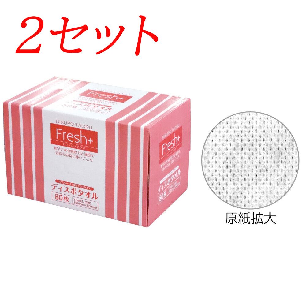 【2セット】 フレッシュプラス ディスポタオル スパンレース 厚手ドライタイプ 80枚入 【pto】
