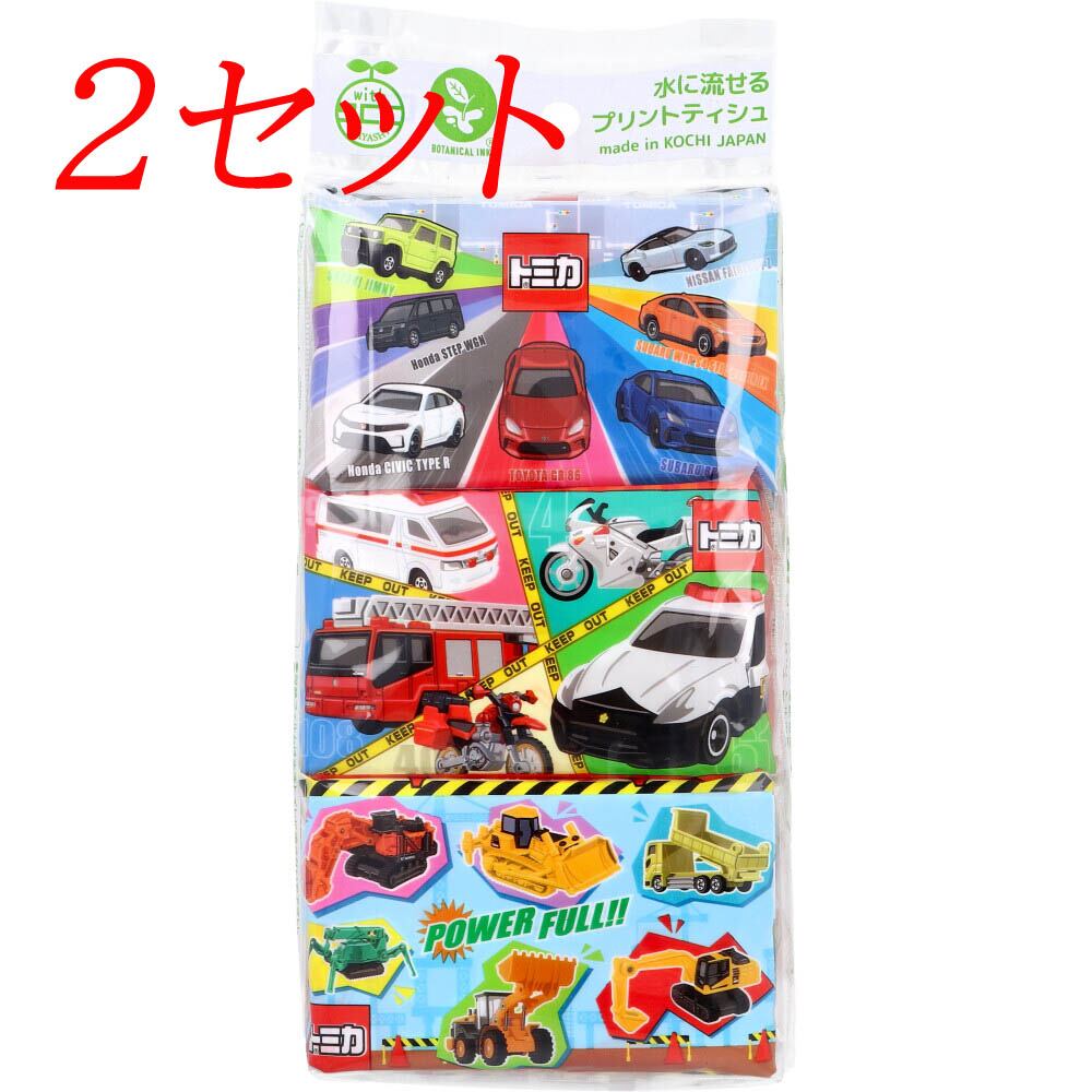【2セット】 トミカ 水に流せるポケットティシュ 16枚(8組)×6個入 【pto】