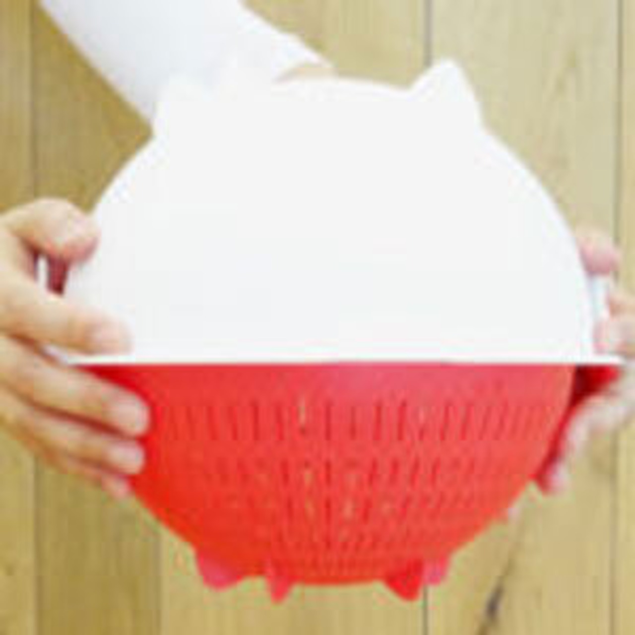 ●ボウルを180度回してフタにできます。両手で押さえて上下に振るとしっかり水切りできます。