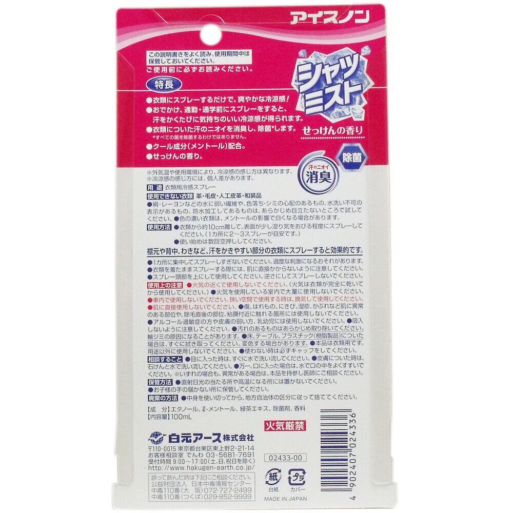 【2セット】 アイスノン シャツミスト せっけんの香り 100mL 【pto】