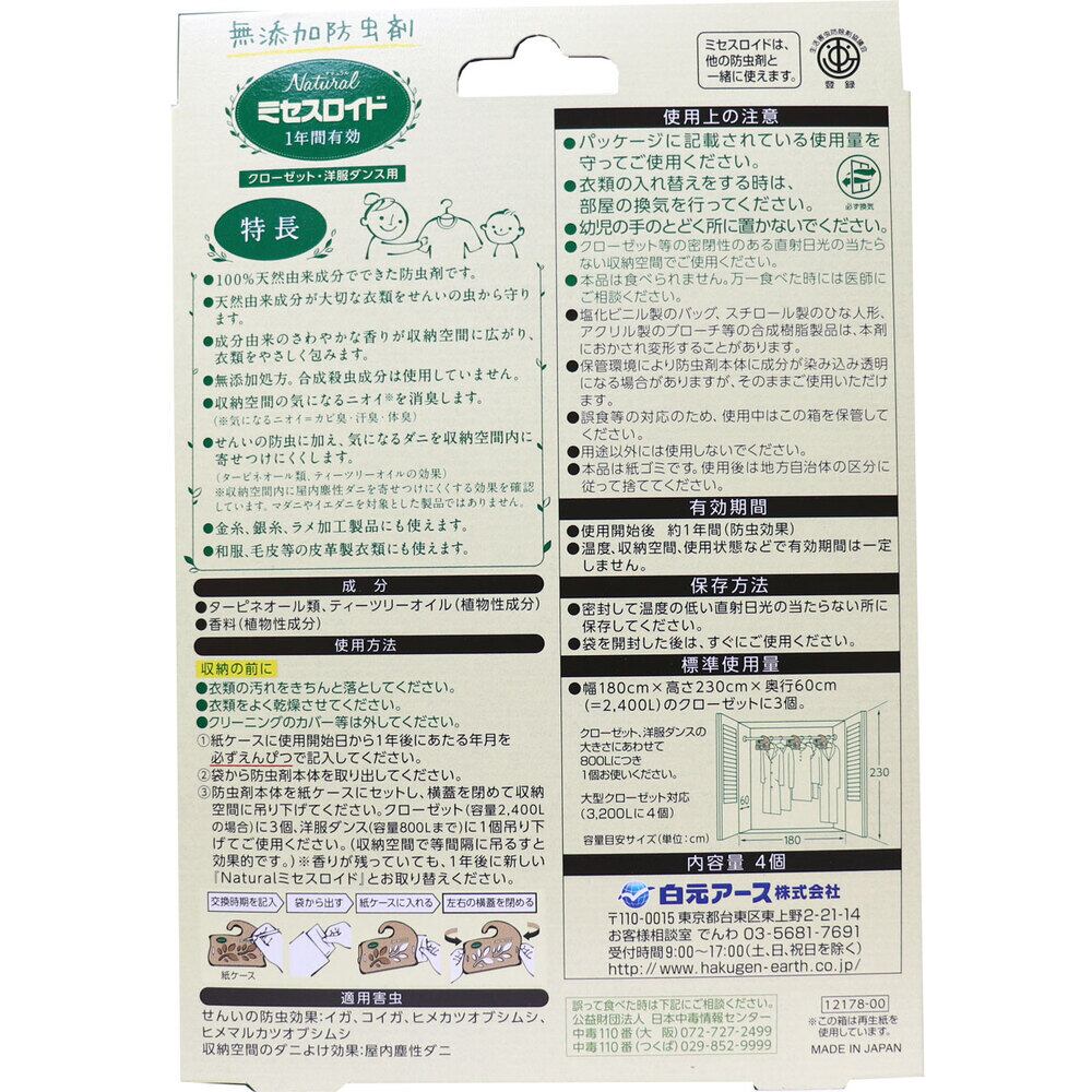 【2セット】 ナチュラル ミセスロイド クローゼット・洋服ダンス用 無添加防虫剤 1年間有効 4個入 【pto】
