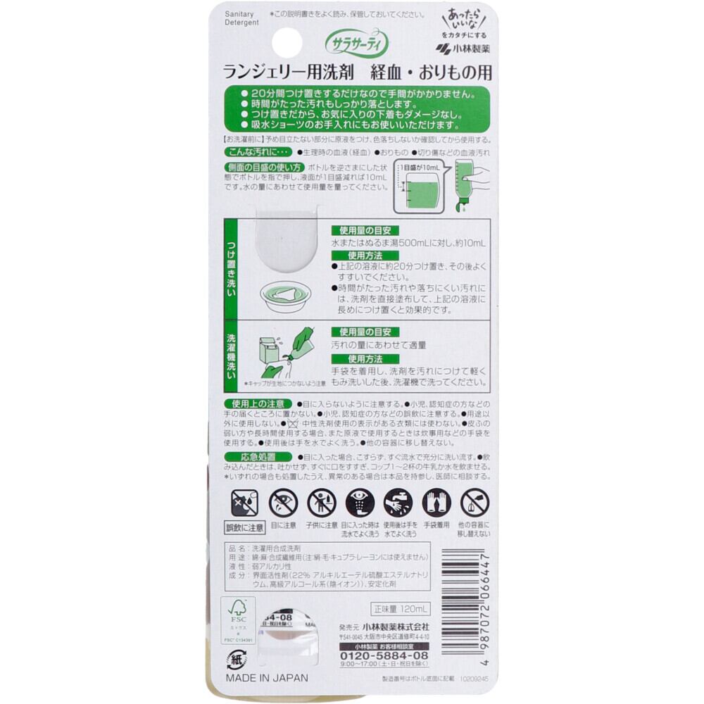 【2セット】 サラサーティ ランジェリー用洗剤 経血・おりもの用 ソープの香り 120mL 【pto】