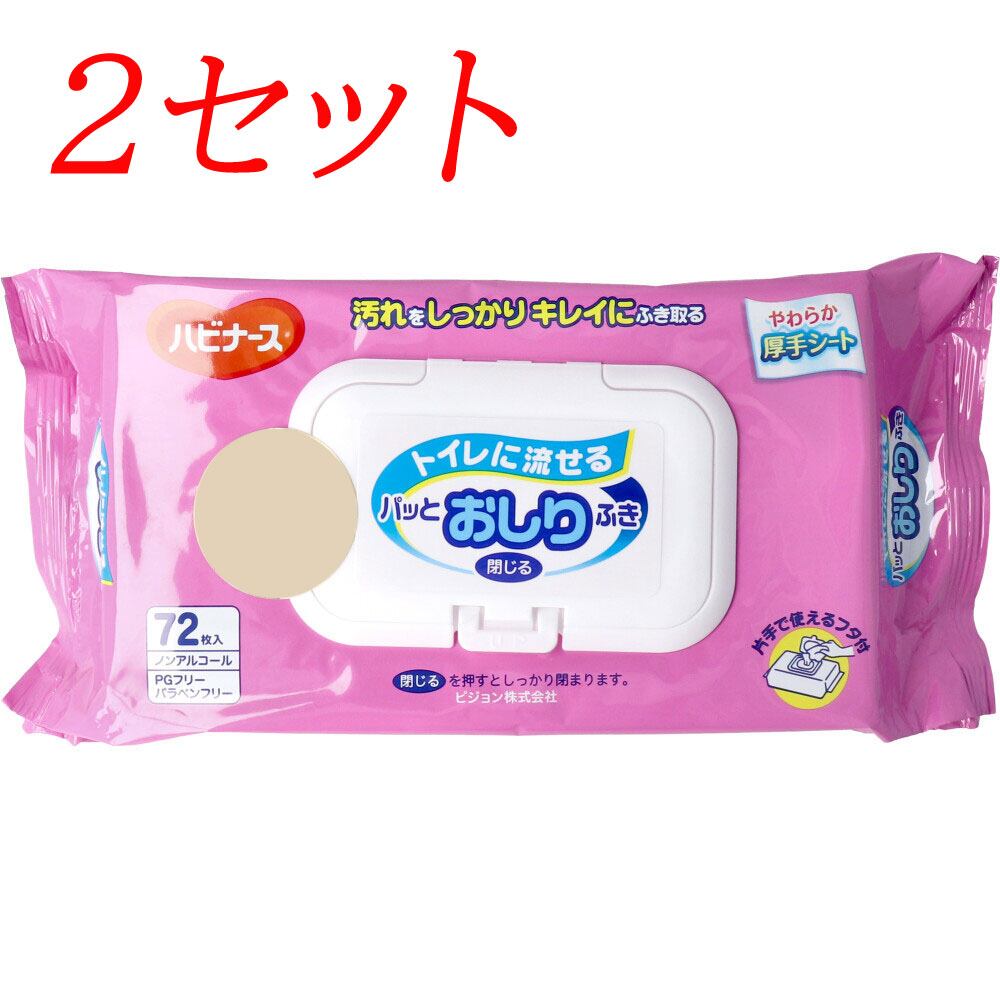 【2セット】 ハビナース トイレに流せるパッとおしりふき 72枚入 【pto】