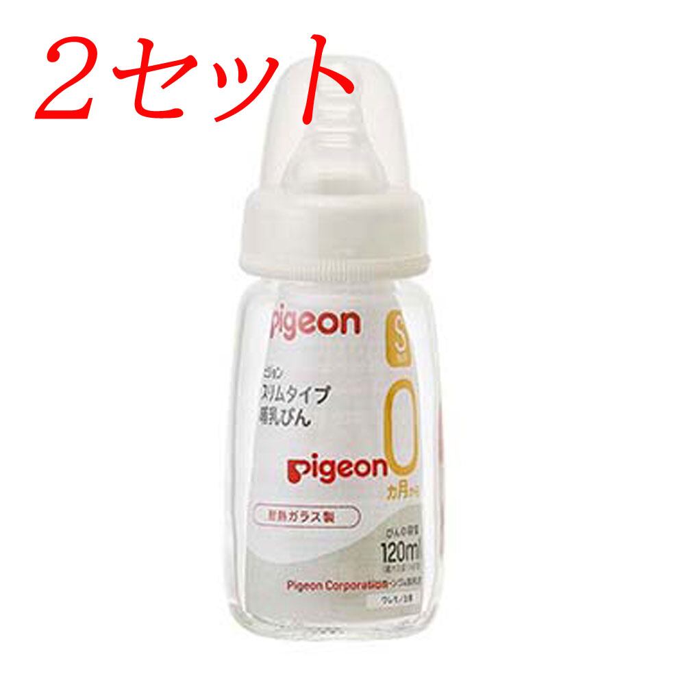 【2セット】 ピジョン スリムタイプ哺乳びん 耐熱ガラス製 120mL 【pto】