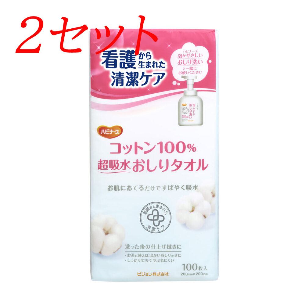 【2セット】 ハビナース コットン100% 超吸水おしりタオル 100枚入 【pto】