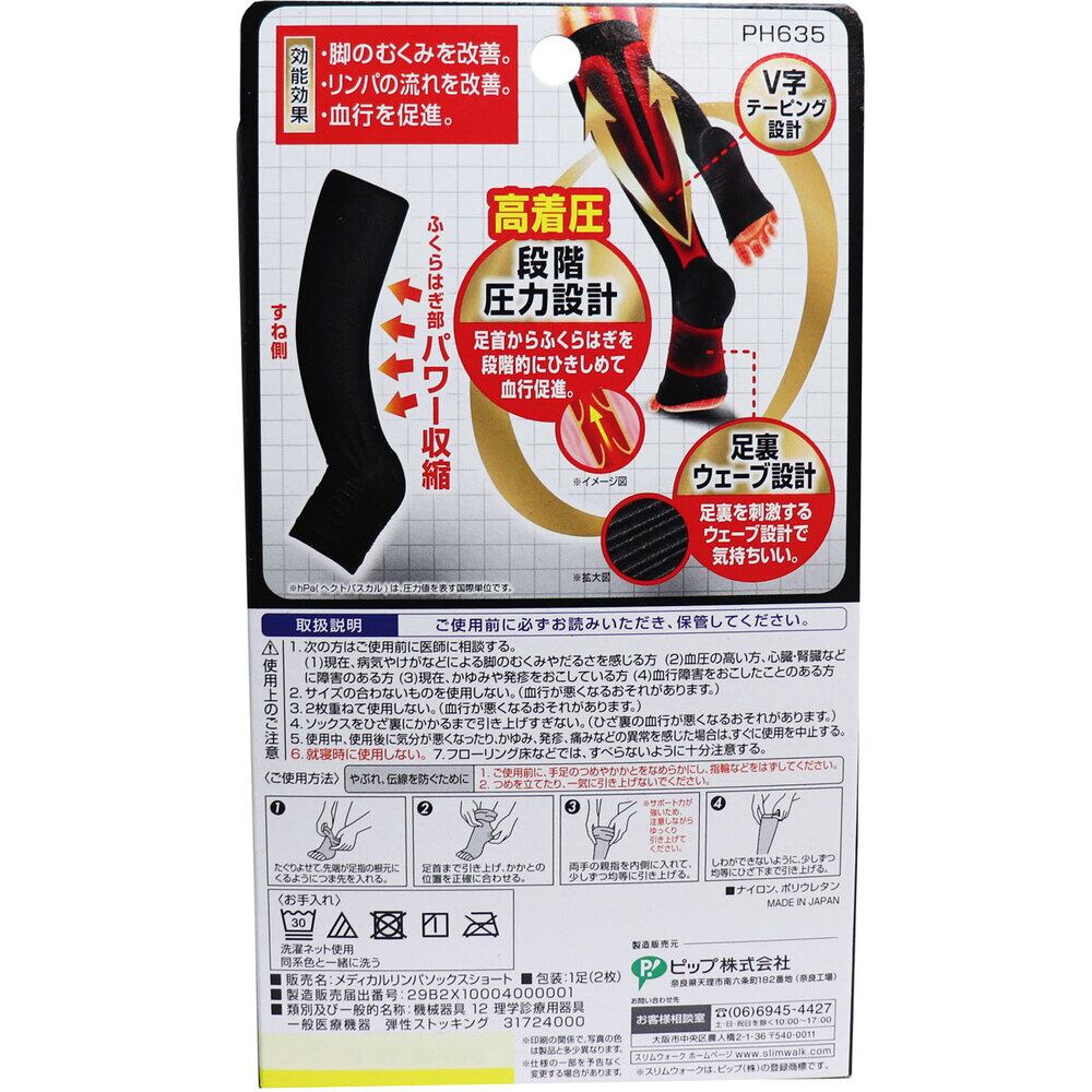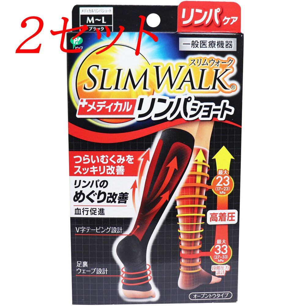 【2セット】 スリムウォーク メディカルリンパショート オープントウタイプ おうち用 ブラック M-Lサイズ 【pto】