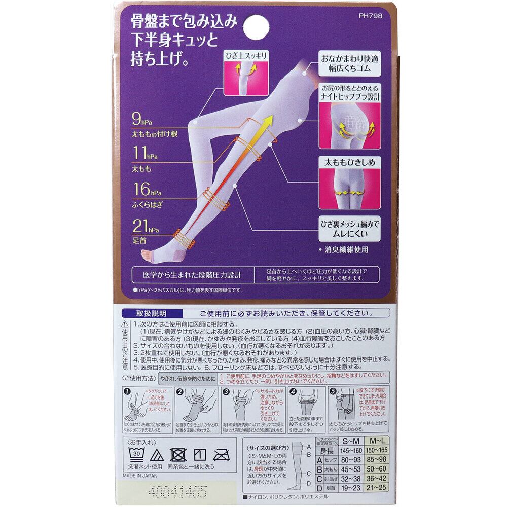 ★M-Lサイズ身長:150〜165cmヒップ:85〜98cm太もも:50〜60cmふくらはぎ:36〜42cm足首:21〜25cm※S-MとM-Lサイズの両方に該当する場合は、足首が中央値に近い方のサイズをお選びください。
