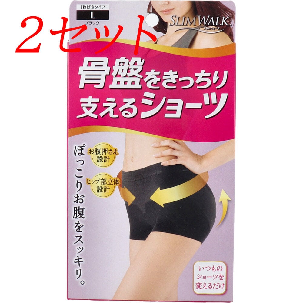 【2セット】 スリムウォーク 骨盤をきっちり支えるショーツ Lサイズ ブラック 【pto】