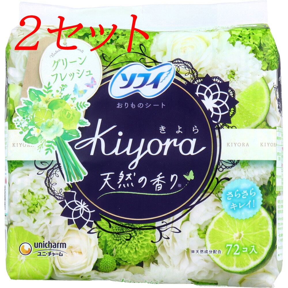 【2セット】 ソフィ Kiyora フレグランス おりものシート グリーンフレッシュの香り 72個入 【pto】