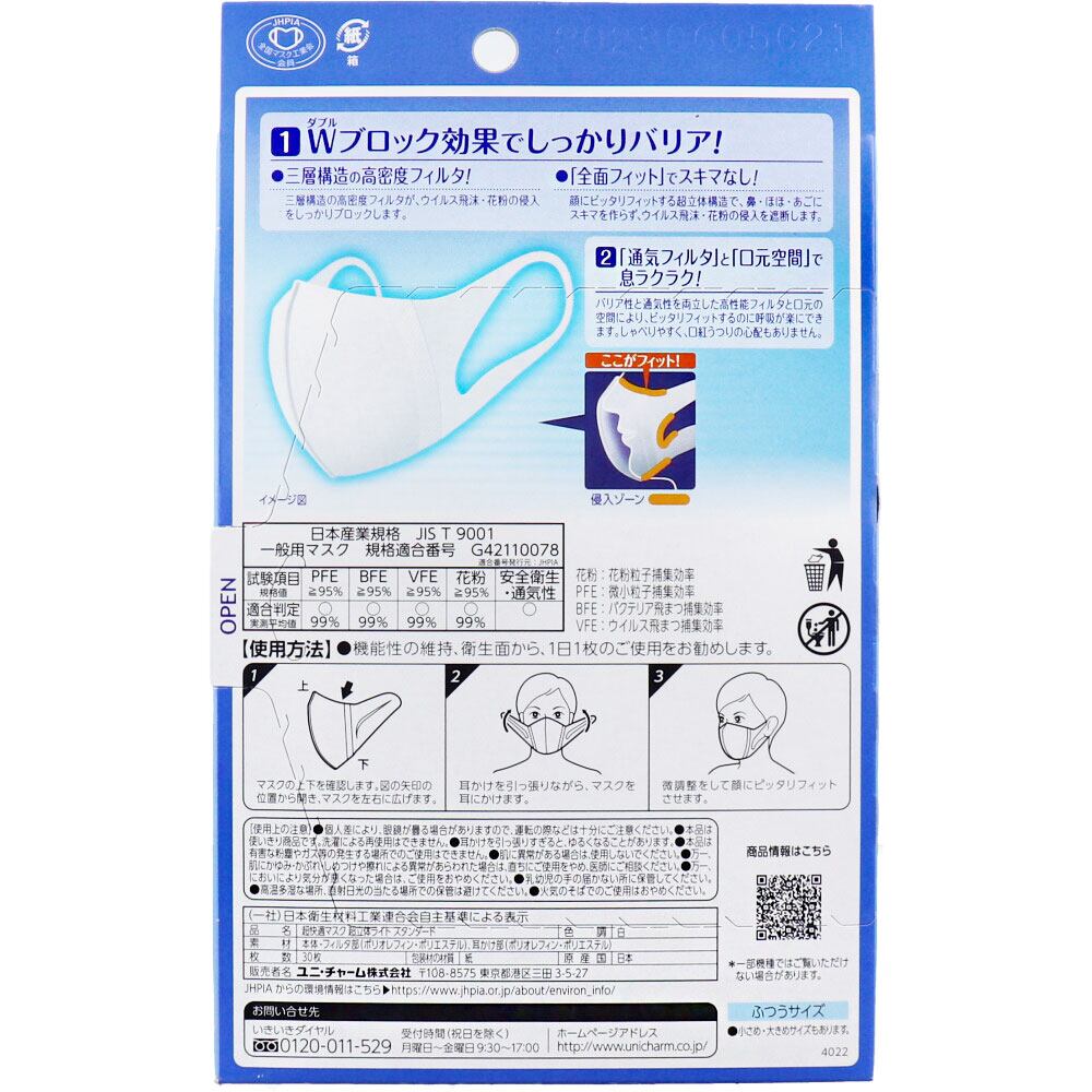 顔にピッタリフィットする超立体構造で、鼻・ほほ・あごにスキマを作らず、ウイルス飛沫・花粉の侵入を遮断します。