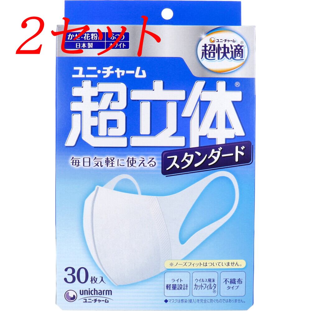 【2セット】 超立体マスク スタンダード かぜ・花粉用 ふつうサイズ 30枚入 【pto】