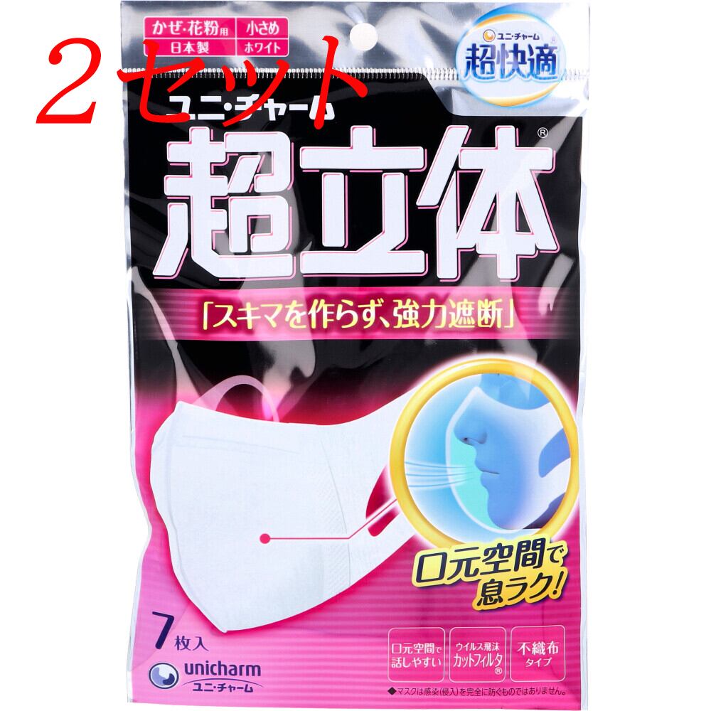 【2セット】 超立体マスク かぜ・花粉用 小さめサイズ 7枚入 【pto】