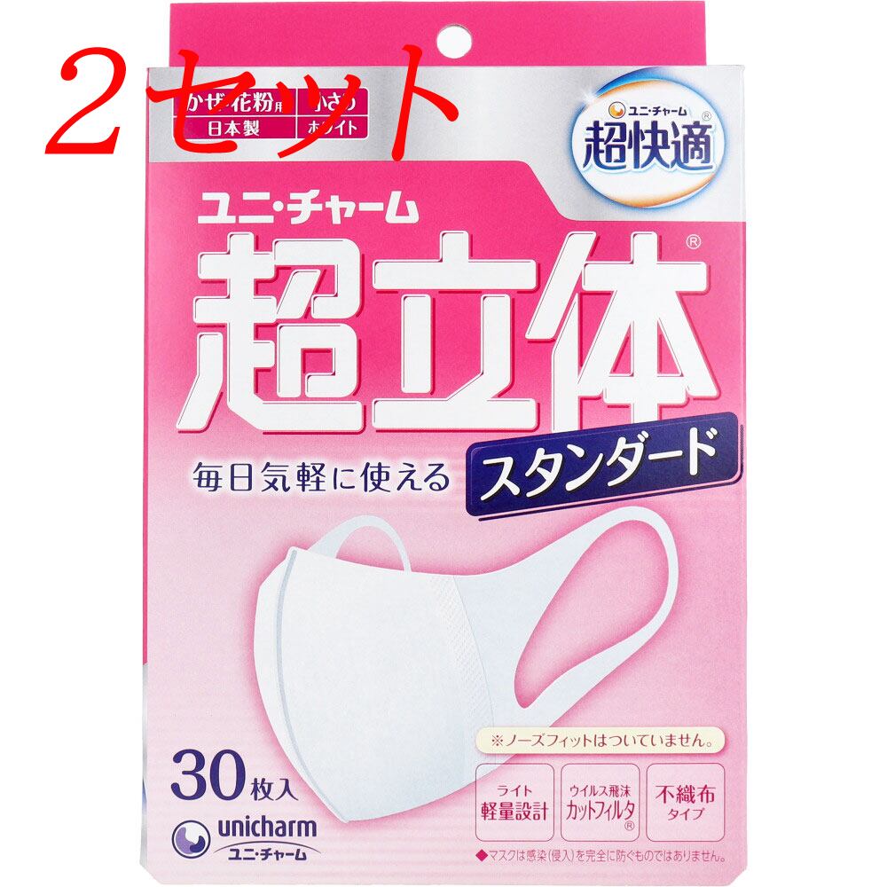 【2セット】 超立体マスク スタンダード かぜ・花粉用 小さめサイズ 30枚入 【pto】
