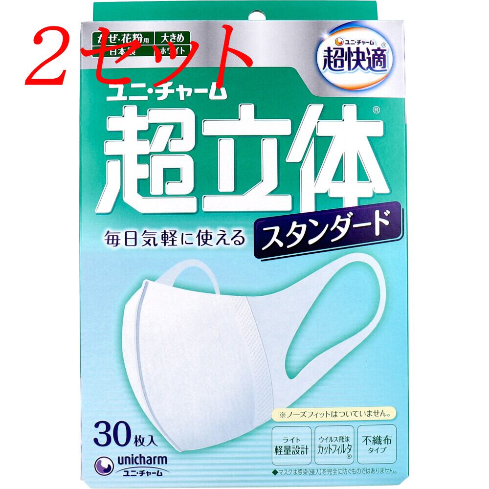 【2セット】 超立体マスク スタンダード かぜ・花粉用 大きめサイズ 30枚入 【pto】