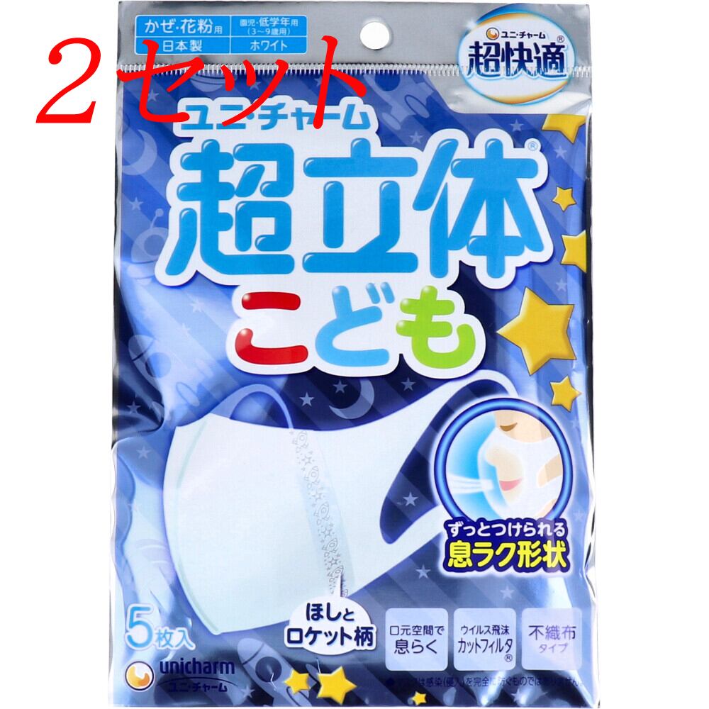 【2セット】 超立体マスク こども用 園児・低学年用 ホワイト 5枚入 【pto】