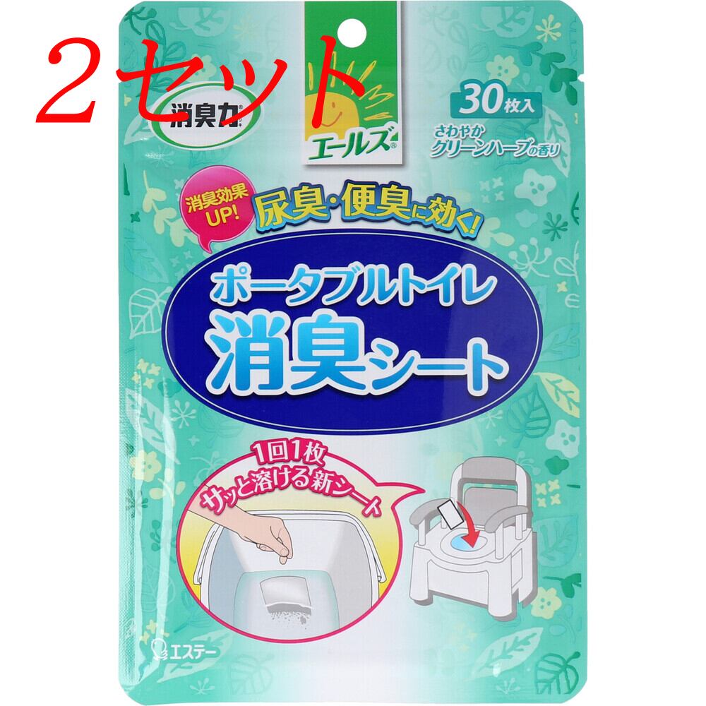 【2セット】 エールズ 消臭力 介護用 ポータブルトイレ消臭シート さわやかグリーンハーブの香り 30枚入 【pto】
