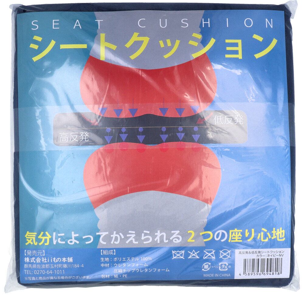 【2セット】 低反発&高反発 W機能 シートクッション ネイビー 【pto】