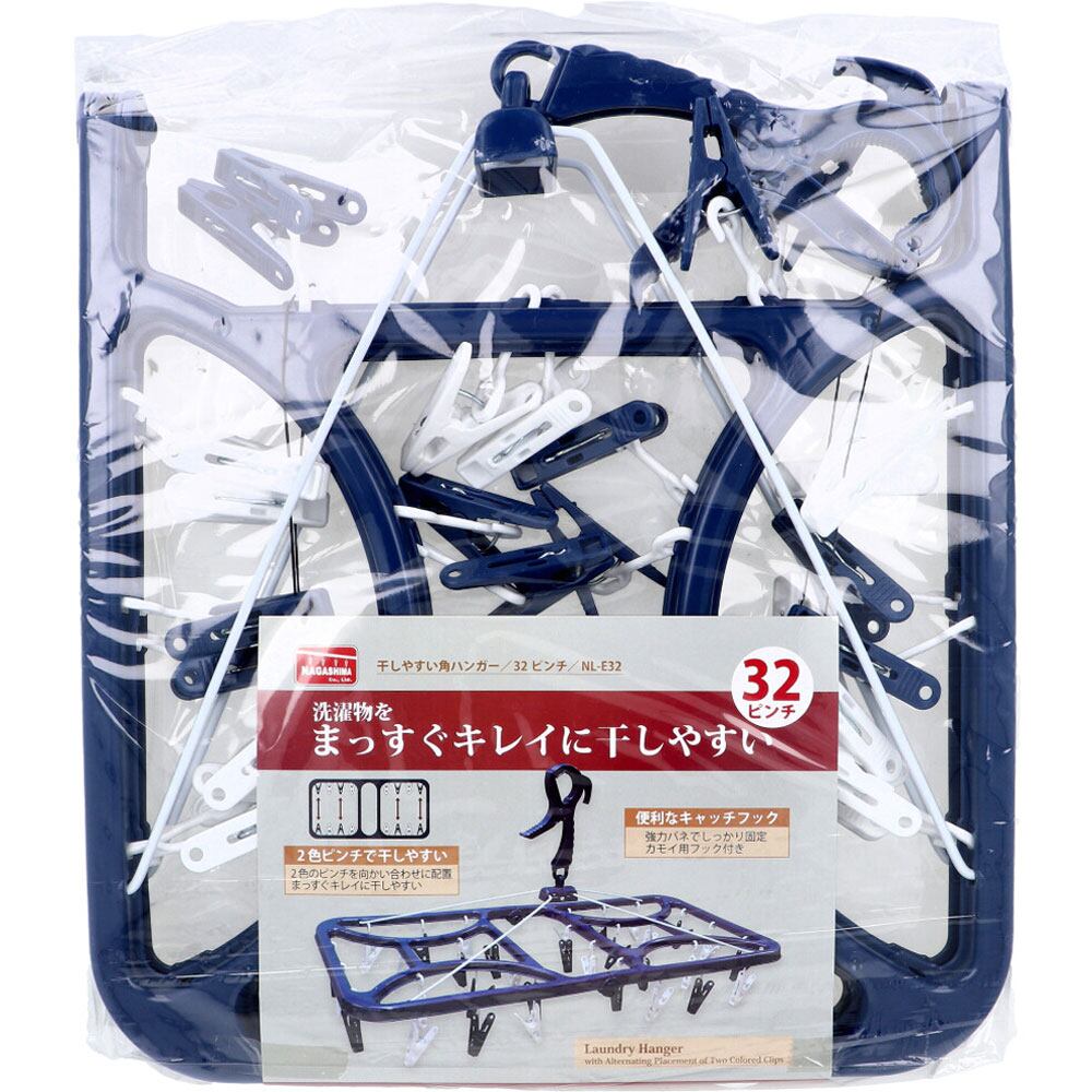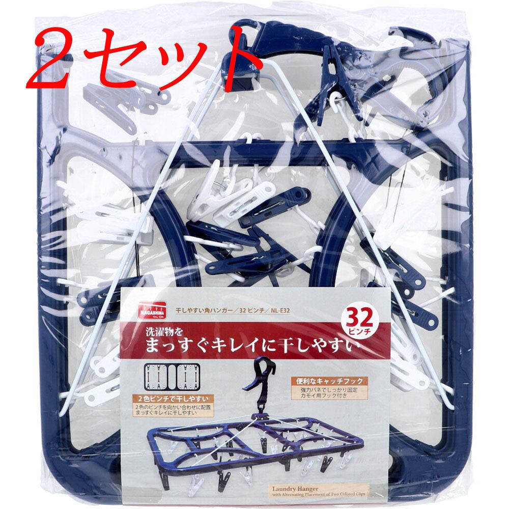 【2セット】 干しやすい角ハンガー 32ピンチ NL-E32 【pto】