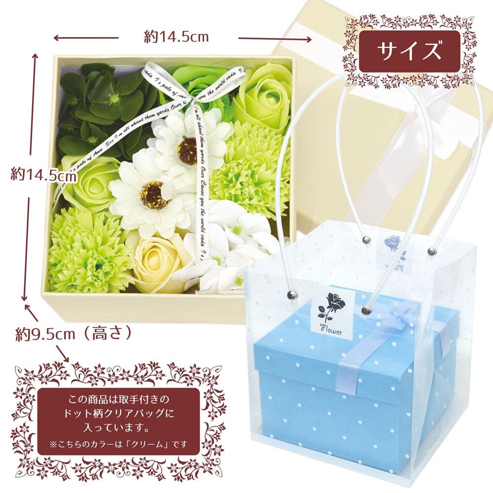 ほのかな香りとボリューム感たっぷりで華やか、石けんで出来ているため枯れることなくお手入れ不要です。