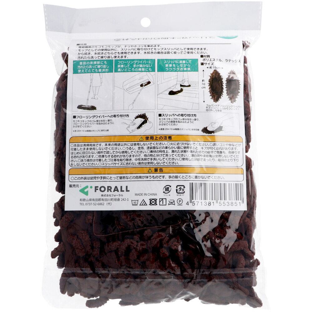 極細繊維のモコモコモップが、チリやホコリを集めます。お手持ちのフローリングワイパーにかぶせて使用できます。お手持ちのスリッパに取り付ければモップスリッパにもなる2WAY仕様。