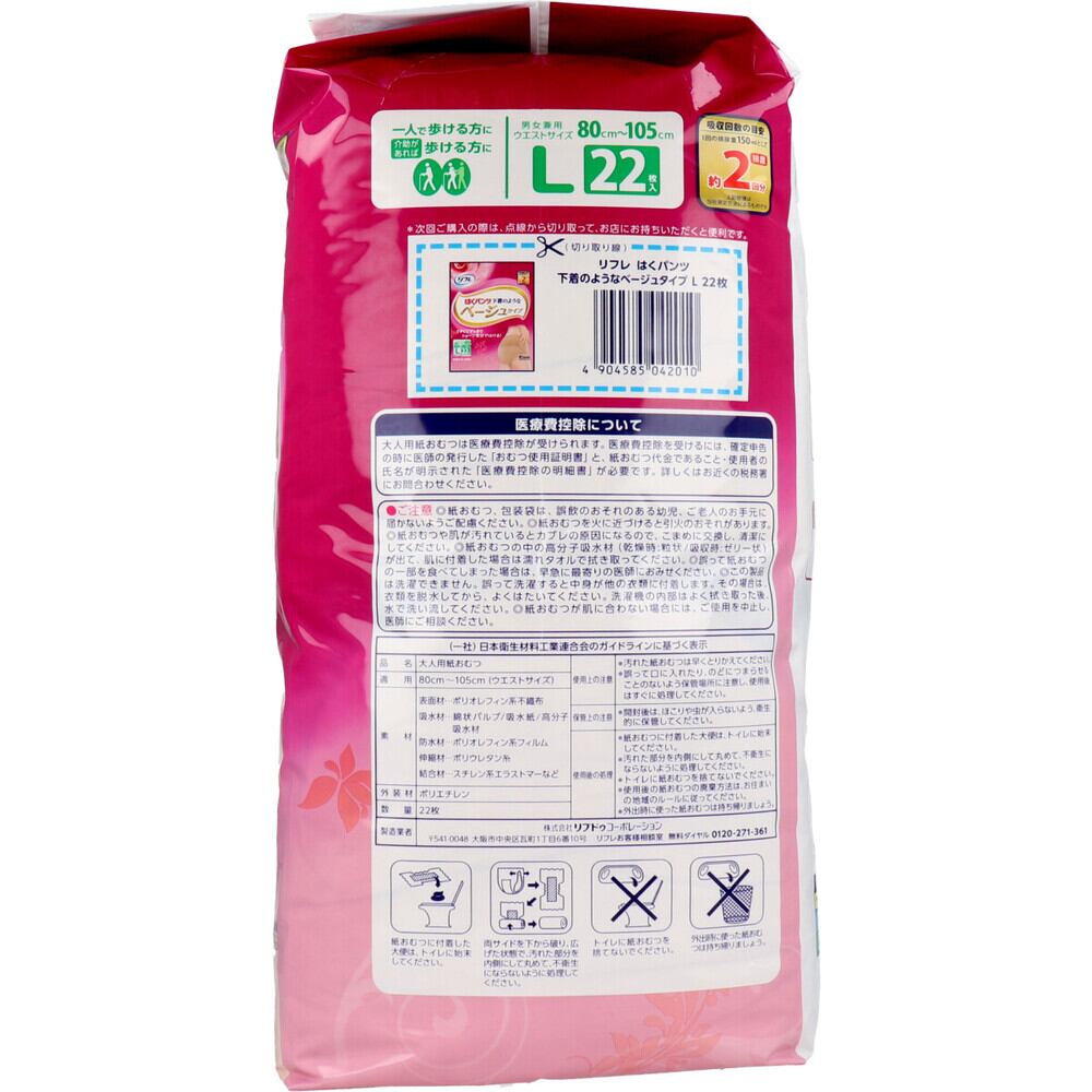 【2セット】 リフレ はくパンツ 下着のようなベージュタイプ Lサイズ 22枚入 【pto】