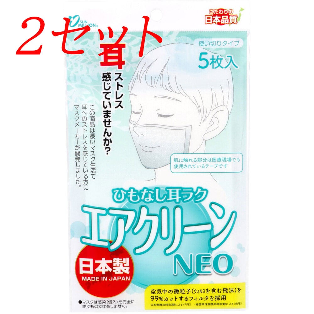 【2セット】 サンミリオン ひもなし耳ラク エアクリーンNEO 使い切りタイプ 5枚入 【pto】