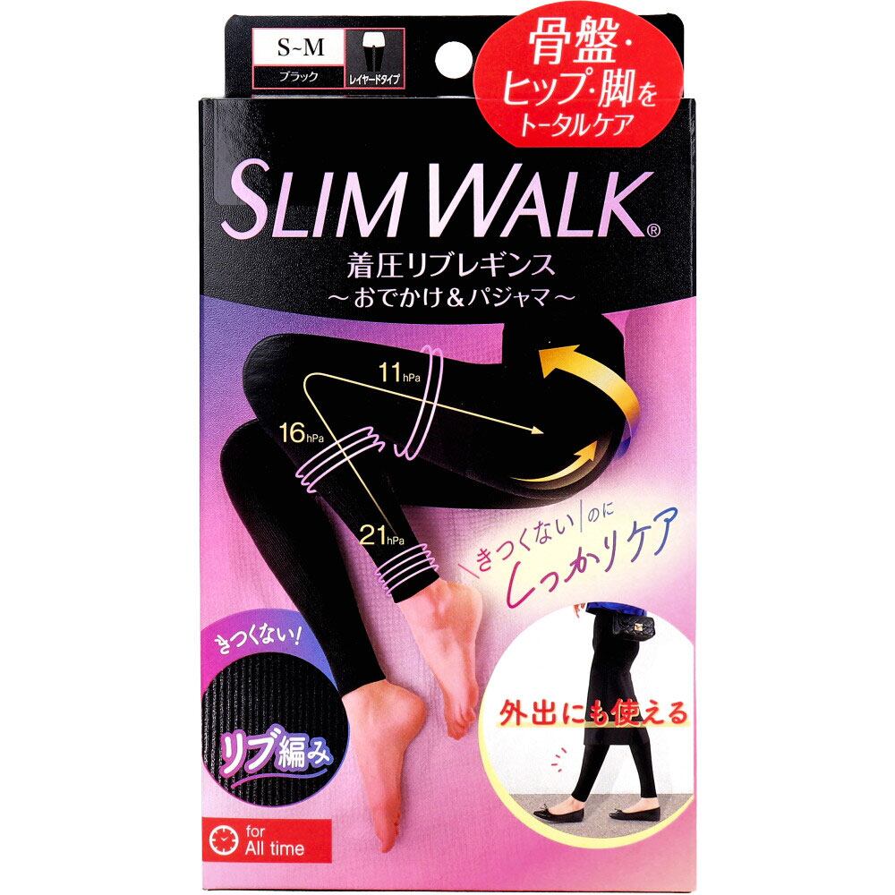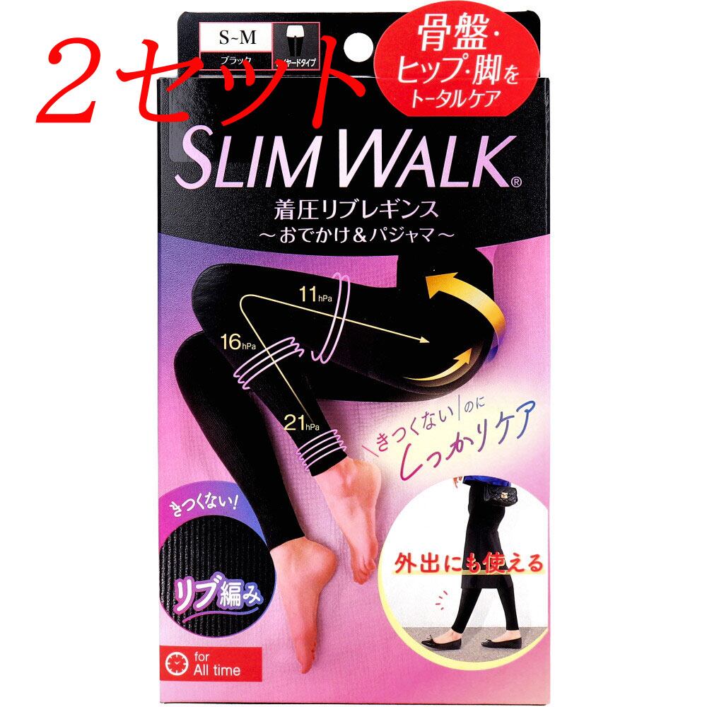 【2セット】 スリムウォーク 着圧リブレギンス おでかけ&パジャマ レイヤードタイプ ブラック S-M 【pto】