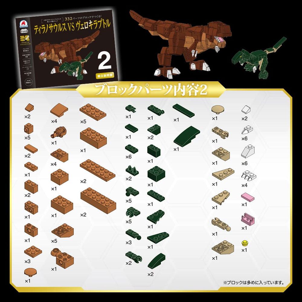 【2セット】 恐竜プレミアムコレクション 332パーツのブロックでつくる! ティラノサウルスVSヴェロキラプトル 【pto】